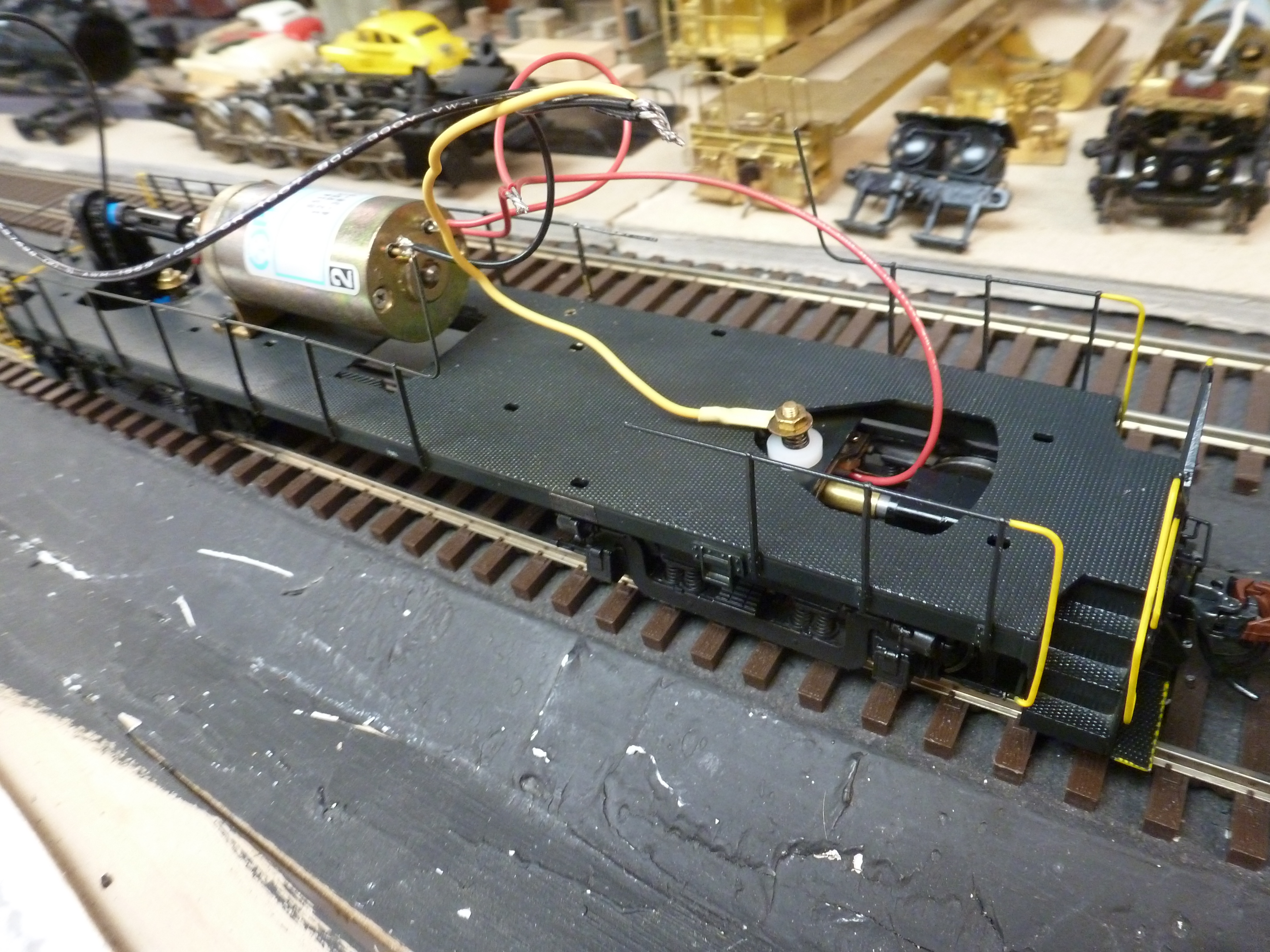 Now I have assembled the drive line. I had some problems as I did not recall the drive line layout exactly, but we worked through it. The mechanism works very smoothly. I had found that the earlier tower gear was not very smooth, and the new set up ran very well. I substituted NWSL Code 145 wheels in the trucks and they enhanced the overall appearance and operation.